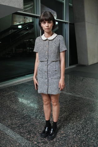 Aktrise Dārta Daneviča vienmēr izceļas ar gaumi un stila izjūtu. Šoreiz uz sezonas atklāšanas sarīkojumu viņa bija izvēlējusies tvīda minikleitu no franču modes zīmola "Sandro".