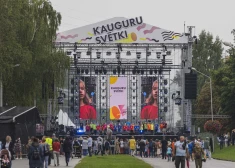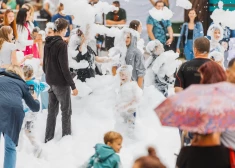 FOTO: Kauguru svētkos cilvēkus priecē populāri mūziķi, lāzeršovs un putu ballīte