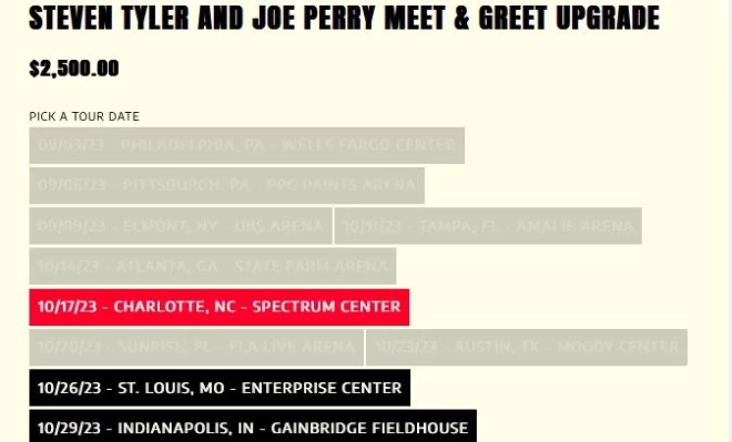 Grupas oficiālajā mājaslapā līdzās turnejas grafikam redzams, ka var iegādāties ne tikai biļetes uz gaidāmajiem koncertiem, bet arī nopirkt “Meet & Greet” biļetes ar Stīvenu Taileru un Džo Periju. Ekskluzīvā iespēja satikties ar mūziķiem faniem izmaksās ļoti augstu cenu. Grupa par šo īpašo piedāvājumu prasa 2500 ASV dolāru no personas. Uz vairākiem koncertiem tikšanās biļetes, kas ir ļoti limitētā skaitā, jau ir izpirktas.