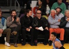Džeks Nikolsons ar dēlu Reimondu devies vērot savas iecienītās komandas „Lakers” spēli.