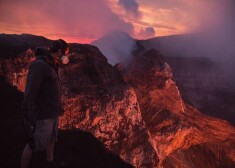 Ārprātīgs hobijs! Puiši dodas vulkāna lavas versmē. FOTO