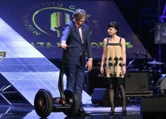 Ai! TV seja Ketija un radio balss Juta Jazz uz skatuves vienādos tērpos. FOTO