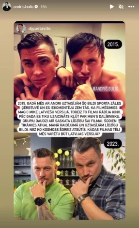 Aktieris Andris Bulis un dīdžejs Gustavito pēc astoņu gadu pauzes no jauna nobildējuši fotogrāfiju, ko uzņēmuši 2015. gadā, kas reiz tapa sporta zāles ģērbtuvē.