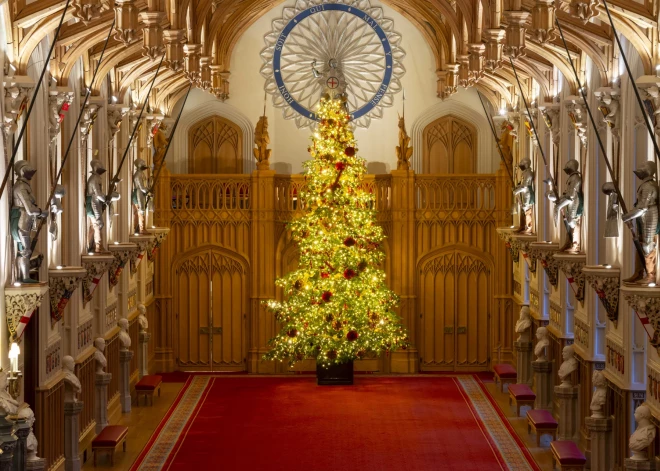 Fonds “The Royal Collection Trust” dalījies ar jaunākajām fotogrāfijām ar grezni izrotātām Ziemassvētku eglītēm, vainagiem un vītnēm Sv. Džordža zālē, kur Megana Mārkla un princis Harijs rīkoja karalisko kāzu pieņemšanu un vēlāk iepazīstināja pasauli ar savu pirmdzimto dēlu, nu jau četrus gadus veco princi Ārčiju.