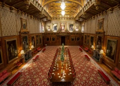 160 pēdu (49 m) garais pusdienu galds Vaterlo zālē ir dekorēts ar porcelāna traukiem no Bikšu lentes ordeņa svinībām, kas katru gadu jūnijā notiek Vindzoras pilī. Savukārt vītnes, ar ko rotātas lielās kāpnes, ved uz Valsts apartamentiem.