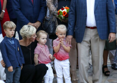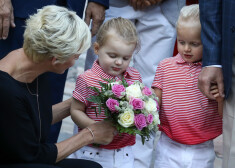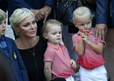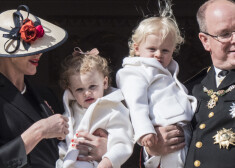 Monako princis Alberts un princese Šarlēna ar dvīņiem