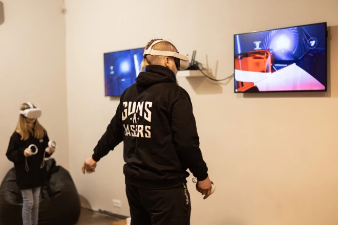 Visas labākās idejas vecpuišu ballītei ir saistītas ar kaut ko jaunu, aizraujošu un to, kas sniedz emocijas. Tieši tā var raksturot virtuālās realitātes spēles. Izmantojot VR aprīkojumu, vecpuišu ballīte virtuāli tiks pārcelta uz aktivitāšu pilnu vietu, kur jautrībai nav robežu. Nav nekā labāka par pasaules glābšanas misiju vai spraigu sporta maču pirms došanās pie altāra. Nāc svinēt svētkus “GUNSnLASERS” VR centrā! Te ikviens atradīs sev piemēroti spēli, jo piedāvājums ir ļoti plašs.