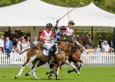 Britu prinču Viljama un Harija ģimenes apmeklē polo spēli 2019. gada 10. jūnijā.