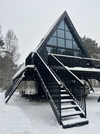 Līdzko 2021. gadā iegādājušies hektāru plašo zemes gabalu, kas atrodas vien 15 minūšu brauciena attālumā no Liepājas, tā sākuši plānot nākamās aktivitātes: “Mēs jau sākotnēji sapratām, ka vēlamies A formas māju. Tā kā zinājām, ka Latvijā jau ir šāda stila brīvdienu mājas, vēlējāmies atšķirties. Kopā ar arhitekti – aktiera Riharda Lepera sievu Kristu Paulu Leperi – nonācām pie ēkas skicēm. Ideja un vēlmes jau bija noformulētas, arhitekte vēl ieteica dažādus knifiņus, un ļoti ātrā laikā tapa mājas arhitektūras projekts.”