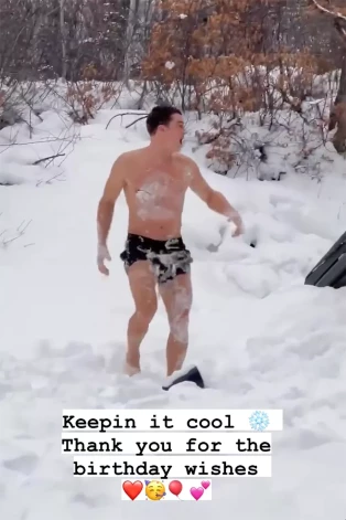 Soctīklā "Instagram" aktieris īsajos stāstiņos ievietoja video, kurā bija redzams, ka ar draugiem izbauda vannu, kas piepildīta ar karstu ūdeni, un kādā brīdī no tās izkāpj, lai baudītu veldzi sniegā.