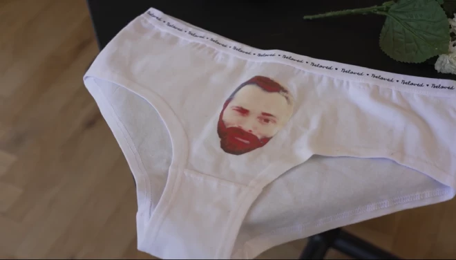 VIDEO: Magones vēstuļdraugs atrāda šovu zvaigznei apakšveļu ar savu portretu