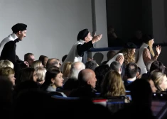 Cilvēki pulcējas uz Lūsēna un Zālītes rokoperas "Sfinksa" pirmizrādi