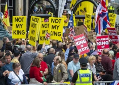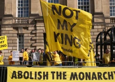 Pret monarhiju noskaņotie aktīvisti un karaļnama entuziasti Skotijā notiekošajās karaļa kronēšanas svinībās stāvēja nelaimīgi plecu pie pleca.