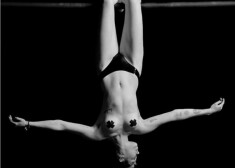 Īsfilmā „Tongue Tied” provokatīvā popzvaigzne demonstrē jutekliskas pozas un akrobātiskas kustības, notriepj augumu ar ķermeņa krāsām, darbojas ar pletnēm un karājas pie stieņa plati ieplestām kājām.
