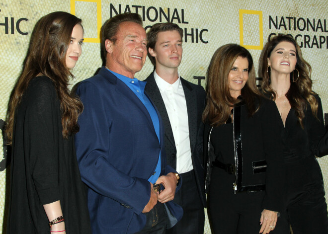 Švarcenegers ar bijušo sievu un bērniem filmas pirmizrādes vakarā
