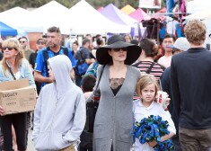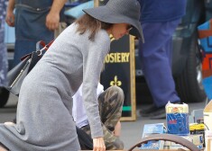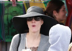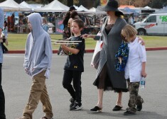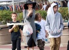 Andželina Džolija ar meitām Vivjenu un Šilo, un dēlu Noksu lielajā tirgū