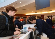 “Prāta vētras” mūziķus šorīt varēja sastapt tirdzniecības centra “Spice” info centrā, kur no pulksten 10 sāka tirgot biļetes uz grupas koncerttūri “7 soļi svaiga gaisa”. Tā kā pirmās trīs dienas biļešu tirdzniecība eKase.lv un t/c “Spice” info centrā ir par īpašu cenu - 21 eiro, turklāt pirmie 50 biļešu pircēji varēja tikt pie dāvanas no “Prāta vētras” (disku ar singlu “Ziemu apsēst” un puišu autogrāfiem), tad jau krietni pirms pulksten 10 fanu pulki drūzmējās pie tirdzniecības centra durvīm. Atveroties tām, fani skriešus devās pie info centra, kur tos jau gaidīja smaidīgie “Prāta vētras” mūziķi Renārs Kaupers, Jānis Jubalts, Māris Mihelsons un Kaspars Roga. Puiši izsniedza faniem autogrāfus, labprāt kopā bildējās, bet rinda nemitējās arī pēc tam, kad pirmie 50 laimīgie jau bija tikuši pie “Prāta vētras” dāvanas.