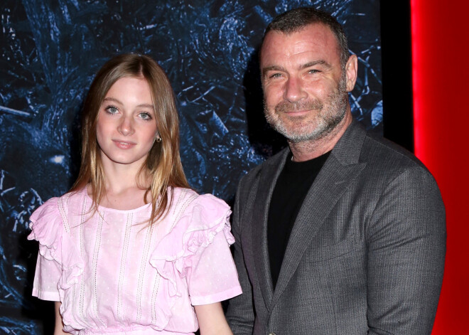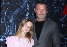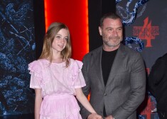Naomi Votsas un Līva Šraibera jaunākais dēls Kajs ģērbjas kleitās