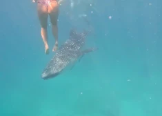 FOTO: latviešu slavenības Filipīnās peld kopā ar haizivīm