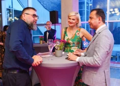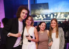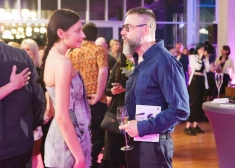 Ļaudis lustējas banketā pēc iestudējuma "Wintera stāsts" pirmizrādes