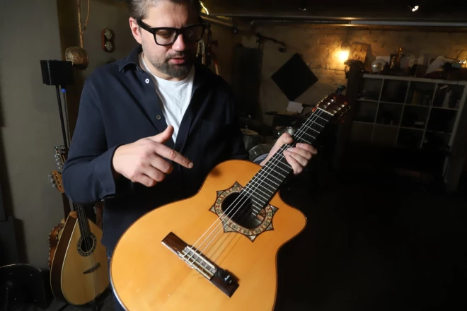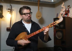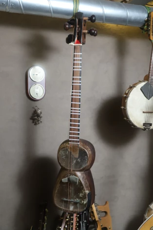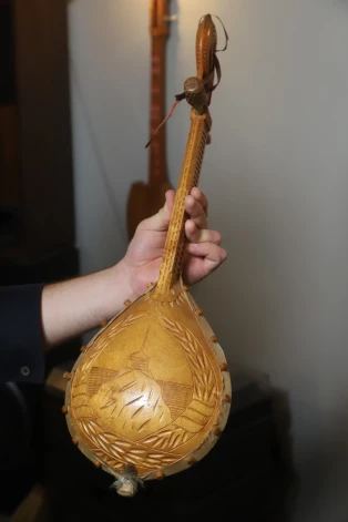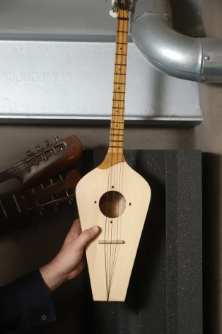 Azeru tars. “Koncertējām Azerbaidžānā, un Baku konservatorijas pagrabā ir milzīga darbnīca, kur taisa nacionālos instrumentus. Meistars man uzdāvināja,” priecīgs saka mūziķis.