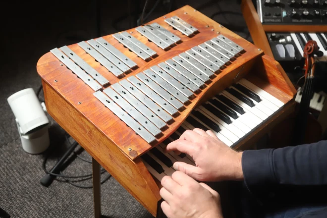 Šāds instruments ir vienīgais pasaulē. To Kārlis atrada Berlīnē – veikaliņā, kas izīrē muzikālos instrumentus kā rekvizītus filmām. “Pieskāros tam, bāc, cik unikāla skaņa! Pārliecināju pārdot. Tas ir tik neparasts instruments – kāds taču bija izdomājis, ka ksilofonu var sameistarot nevis kā sitamo instrumentu, bet kā taustiņinstrumentu! Esmu to izmantojis vismaz sešās filmās.”