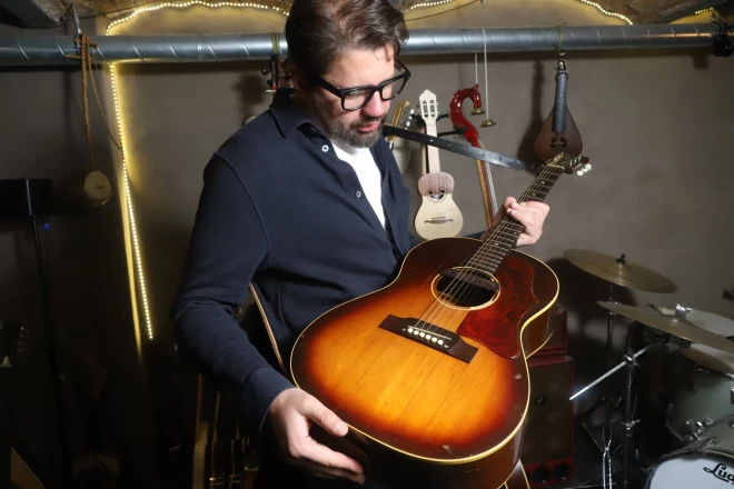 1954. gadā ražota "Gibson" ģitāra. Tieši šis modelis bija rokenrola karaļa Elvisa Preslija pirmā ģitāra. “Atradu Ņujorkā sludinājumos. Tai gan bija mazliet bojāts korpuss, bet nekas – iedevu vijoļmeistaram saremontēt, un nu man ir ģitāra, ar kādu spēlēja Elviss. Nebrīnos, kāpēc viņš izvēlējās sev tieši šo modeli, brīnišķīga ģitāra. Vēsturisks instruments, ar autentisku, 50. gadu skaņu. Man šī ģitāra ir ļoti mīļa.”