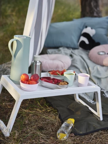 Interjera dizainers iesaka dažus par pievilcīgu cenu iegādājamus risinājumus lielākam komfortam, pavadot laiku svaigā gaisā: ēdienu un dzērienu pasniegšanai noderēs paplāte ar salokāmām kājām (piemēram, KLIPSK paplāte par 9,99 EUR). Ja līdzi ir arī mazie ķipari, lieliska izvēle ir bērniem paredzēti trauki un galda piederumi (KALAS, kas pieejami no 0,50 EUR). Tie ir ideāli piemēroti pašiem mazākajiem, kam, mācoties pastāvīgi ieturēt maltīti, gadās nomest traukus, izliet dzērienus un radīt jucekli.