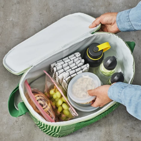 Atsevišķus pārtikas produktus vai traukus var ievietot NÄBBFISK aukstuma somā, kas ir ne tikai ērti pārnēsājama, bet arī ilgāk saglabā produktus svaigus un uztur pareizo temperatūru. Ja plāno pasniegt karsto ēdienu, ir vērts gatavot ēdienus, kurus var iepakot pārtikas termosā.