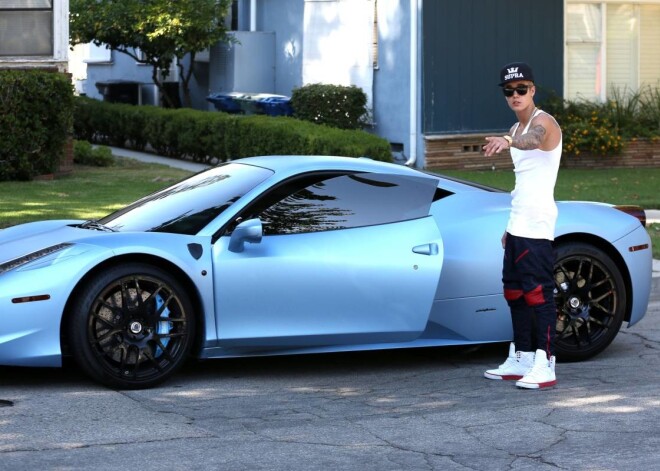 Bībers pietur kājstarpi, demonstrē 17. tetovējumu un jauno superauto