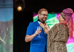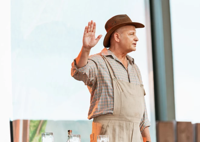 FOTO: jautrā gaisotnē nosvin izrādes "Rabarberu vīns" vasaras tūres sākumu