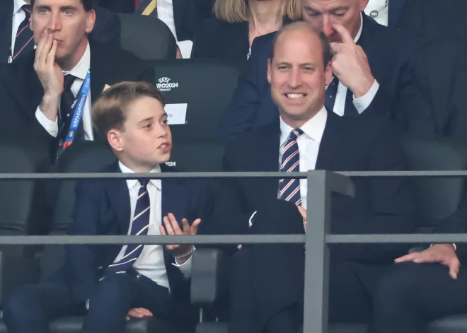 Princis Viljams ar dēlu princi Džordžu vēro Eiropas futbola čempionāta finālu 2024. gadā