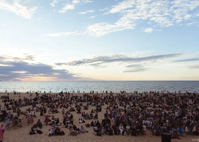 FOTO: Vecāķu pludmalē saulrietā izskan ērģeļmūzikas koncerts