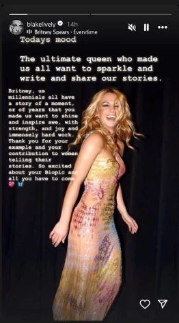 Bleika arī veltīja atzinīgus vārdus popzvaigznei, sakot, ka Britnija bijusi īsta karaliene, kas “likusi mums visiem dzirkstīt un rakstīt, un dalīties ar saviem stāstiem”. Bleiku uz pirmizrādes vakaru pavadīja viņas vīrs aktieris Raiens Reinoldss, kā arī viņa jaunākās filmas “Dedpūls & Vilknadzis” kolēģis un labs draugs – aktieris Hjū Džekmens.