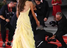 FOTO. Džordžs Klūnijs pirmizrādes vakarā steidz palīgā pakritušam fotogrāfam un pats ķeras pie bildēšanas