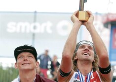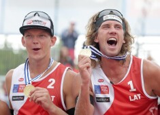 Latvijas pludmales volejbolisti Aleksandrs Samoilovs un Jānis Šmēdiņš svētdien Austrijas pilsētā Klāgenfurtē uzvarēja Eiropas čempionāta (EČ) finālā.