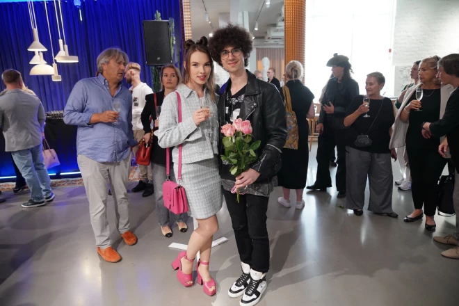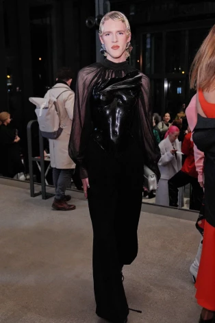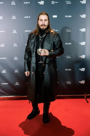 Pašmāju grima mākslinieks un influenceris savos tērpos parasti diezgan veiksmīgi apvieno sieviešu un vīriešu garderobes elementus. Arī šoreiz viņam sanāca teju teatrāls tēls, kas ļoti piestāvēja Rīgas modes nedēļas apmeklējumam.
