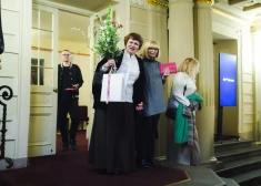 FOTO: ar smaidiem un ziediem ļaudis dodas Nacionālajā teātrī baudīt koncertu "Iet kā smērēts"