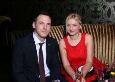 TV3 laika ziņu lasītājs Ansis Klintsons ar sievu Montu radio “Capital FM” gada nogales ballītē 2014. gada 18. decembrī.