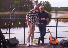 FOTO: dziedošais policists Nikolajs Puzikovs sieviņas pavadībā prezentē savu jaunāko albumu