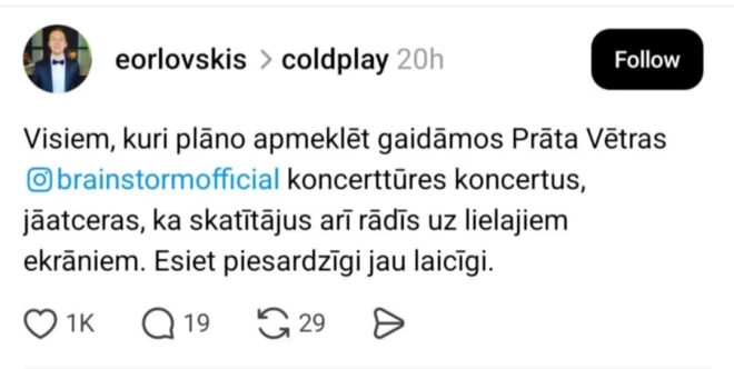 Lai brīdinātu arī tos, kuri plāno apmeklēt “Prāta Vētras” koncertu, “Threads” lietotājs "erlovskis" raksta: “Jāatceras, ka skatītājus arī rādīs uz lielajiem ekrāniem. Esiet piesardzīgi jau laicīgi!”