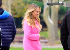“Classic Ultra Mini Boot” modelim viņa piemeklējusi izteikti rudenīgu tērpu – gaisīgus vidēja garuma svārkus, mīkstu pelēku adītu jaku un “oversize” trenci. Rezultāts ir elegants un izsmalcināts, un Sāra tam piešķīrusi pat nelielu atsauci uz Kerijas tēlu, izvēloties koptēlu papildināt ar pērļu kaklarotu.