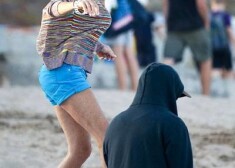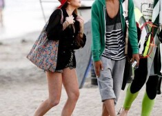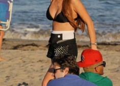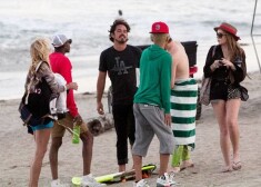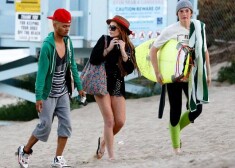 Lindseja Lohana pludmalē atpūšas retro stila peldkostīmā