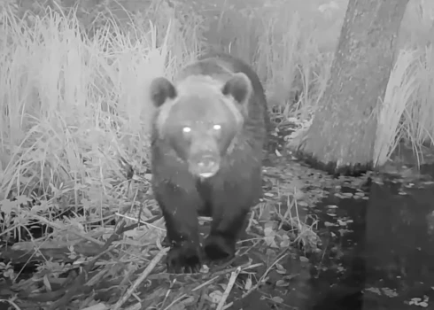 Pa miskasti ložņājošs lācis kļūst par laika ziņu zvaigzni. VIDEO
