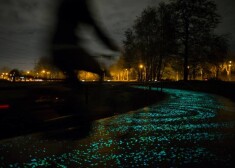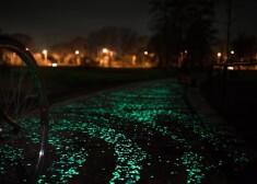 Saules enerģijas veloceliņš - ar tādu tagad lepojas Nīderlandē. Mēs visi zinām, ka braukšana diennakts tumšajā laikā, nemaz nerunājot par nomaļākām vietām, ir riskanta un reizumis nepatīkama. Kāds mākslinieks no Amsterdamas izdomājis risinājumu, kas turklāt ir ļoti estētisks pats par sevi - mirdzošs veloceliņš! Dāns Rosegārds radījis maģiski skaistu efektu, kas turklāt ir arī praktisks. Viņš izmantojis krāsu, kas papildināta ar luminiscējošu pūderi; maisījums saulainajā laikā "savāc" sauli un spīd tad, kad iestājas tumsa. Ar krāsojumu pārklātās virsmas savu funkciju pilda apmēram 8 stundas - tieši tik, cik caurmērā nepieciešams. Šo pašu tehniku nesen Nīderlandē sāka izmantot, lai iezīmētu joslas uz auto šosejām. Skaisti "izmētāti" pigmenti pa veloceliņiem savukārt tos padara gluži kā par mākslas objektiem.