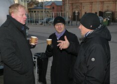 Tāpēc sezonas noslēguma ballītē visā “TE!” komandā valdīja īsts satikšanās prieks. Piemēram, Dace Grimze bija sajūsmināta, pamanot kolēģim, vides draugam un Latvijas zināmākajam copes vīram Mārim Oltem pie krūtīm piespraustu filcētu zivi. „Stilīga rotaslieta!” slavēja Dace. Māris atklāja, ka rotu iegādājies pirms dažām nedēļām Ērgļu skolas Miķeļdienas gadatirgū. Olte ne tikai palīdzējis dēlam tirgum sarūpēt žāvētus asarus, bet skolēnu tirdziņā iepircies arī pats. „Meitene Elizabete Spaile, kas, starp citu, redzama “Carnival Youth” klipā, kopā ar mammu bija safilcējusi brīnišķīgas lietas, starp kurām pamanīju un par diviem eiro nopirku šo zivi. Tā teikt – zivs pret zivi! Tāpat jau nevar braukt uz lielpilsētu – ja nebūs sava pipariņa, jutīšos kā pelēkā lauku pele,” Rīgas kolēģu bariņā smēja ērglēnietis Olte.