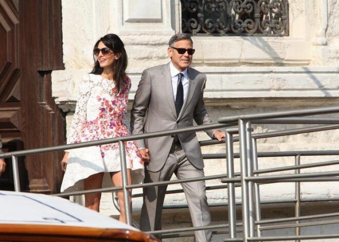 Jaunā sieva Amala Alamuddina pirmajai dienai pēc kāzām izvēlējusies itāliešu zīmola „Giambattista Valli” mini kleitu. Džordžs Klūnijs sievu pavadīja, tērpies ...