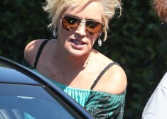 Koķetā topiņā ar atkailinātiem pleciem 56 gadus vecā aktrise Šārona Stouna devās ieturēt maltīti Holivudā.
