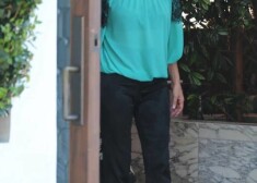 Aizvadītajā trešdienā aktrise kopā ar draugiem bija devusies ieturēt pusdienas Rietumholivudā. Šārona bija tērpusies gaisīga auduma tirkīza krāsas topiņā ar atkailinātiem pleciem un melnu mežģīņu akcentiem piedurkņu daļā. Koķetajam topiņam, kas atsedza aktrises melnā krūštura lencītes, viņa bija pieskaņojusi zilimelnas bikses, ar blāvi saskatāmu ziedu rakstu, kas savukārt sasaucās ar topiņa mežģīnēm.