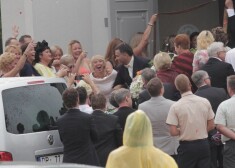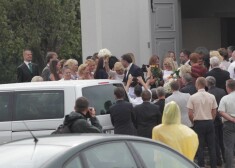 Kāzu laikā jaunlaulātos un kāzu viesus mērcēja lietus. Baznīcā ejot, līgavu vairāki vīrieši cītīgi slēpa aiz lietussargiem, taču pēc salaulāšanās jaunlaulātie ne no viena neslēpās un sveicēju izbārstītajā ziedlapiņu lietū ļāvās skūpstiem.